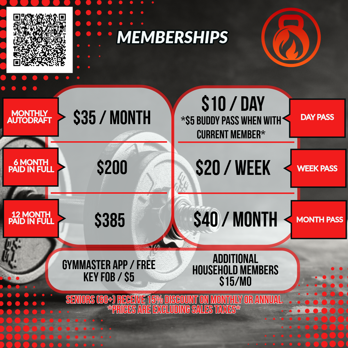 *If you qualify for a discount, come in during staffed hours. Memberships are non-refundable. Cancellation notices must be given at least 10 days in advance to cancel recurring monthly payments.